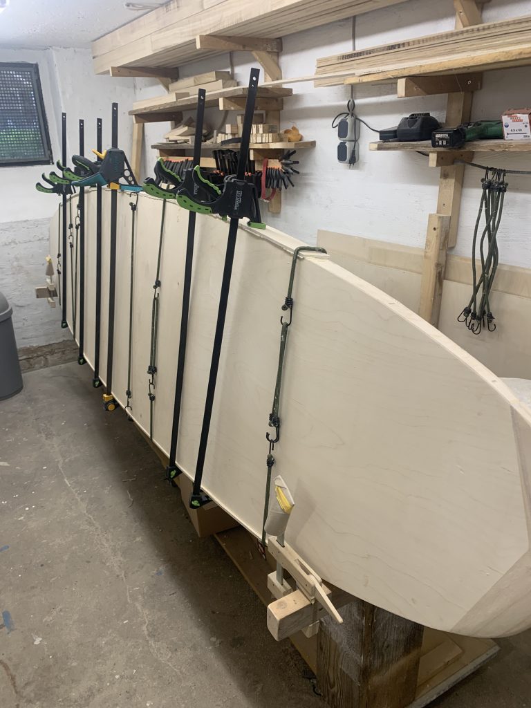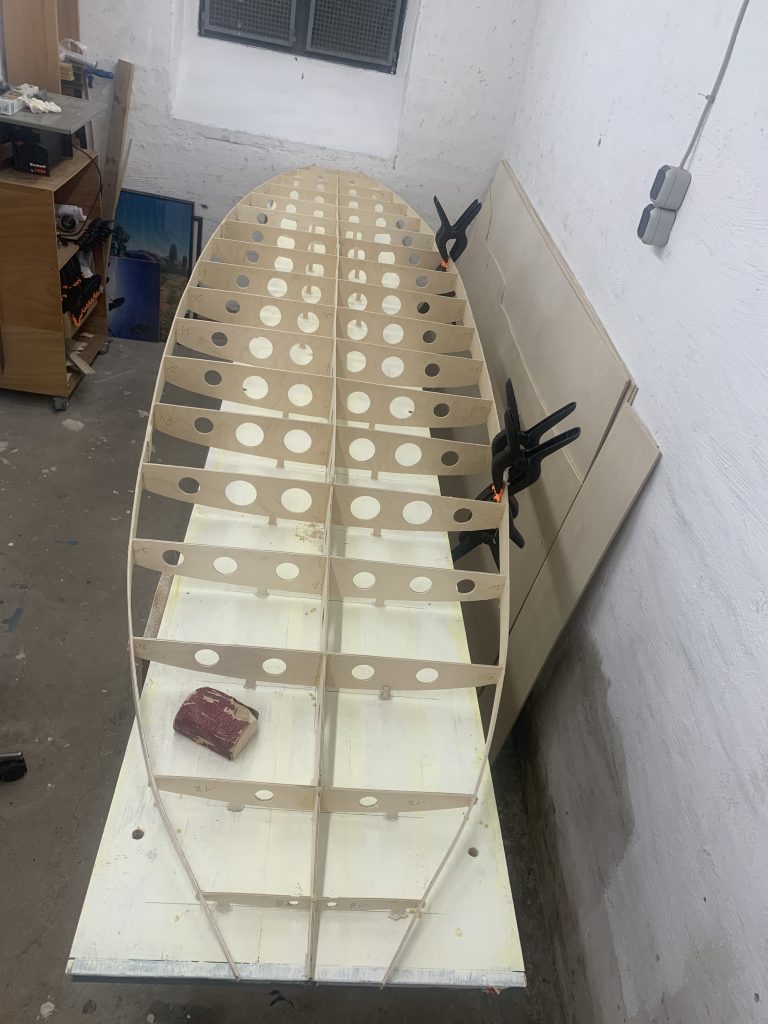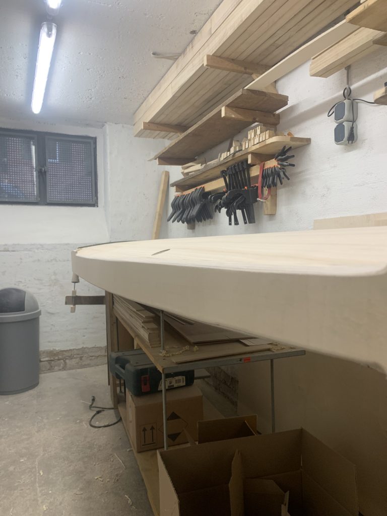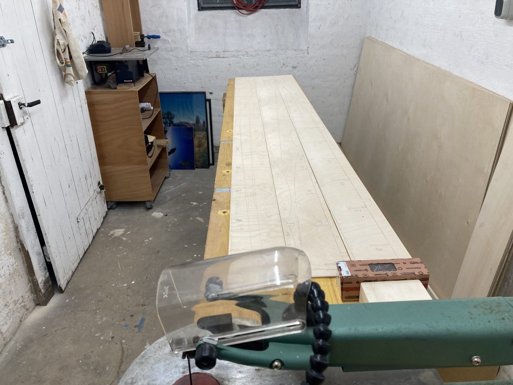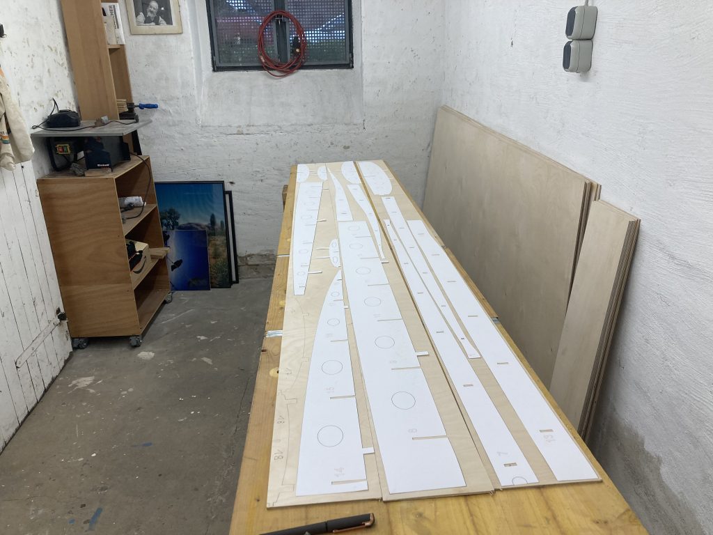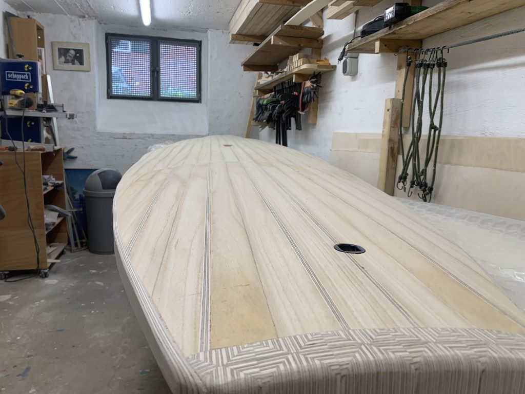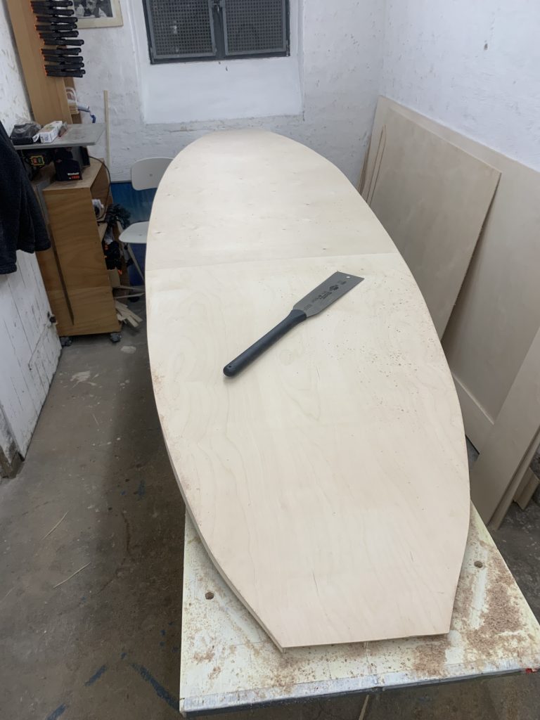 Hier die Fotodoku von meinem Stehboot – Selbstbau….. Aufgezeichnet (4mm wasserfest verleimtes Sperrholz) ausgeschnitten… Plan ausgedruckt… (schweres Papier: mind. 180g/qm – hilft später beim Anzeichnen)