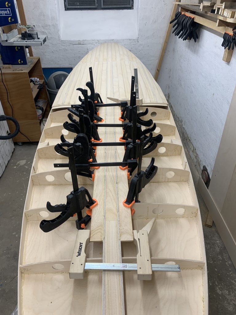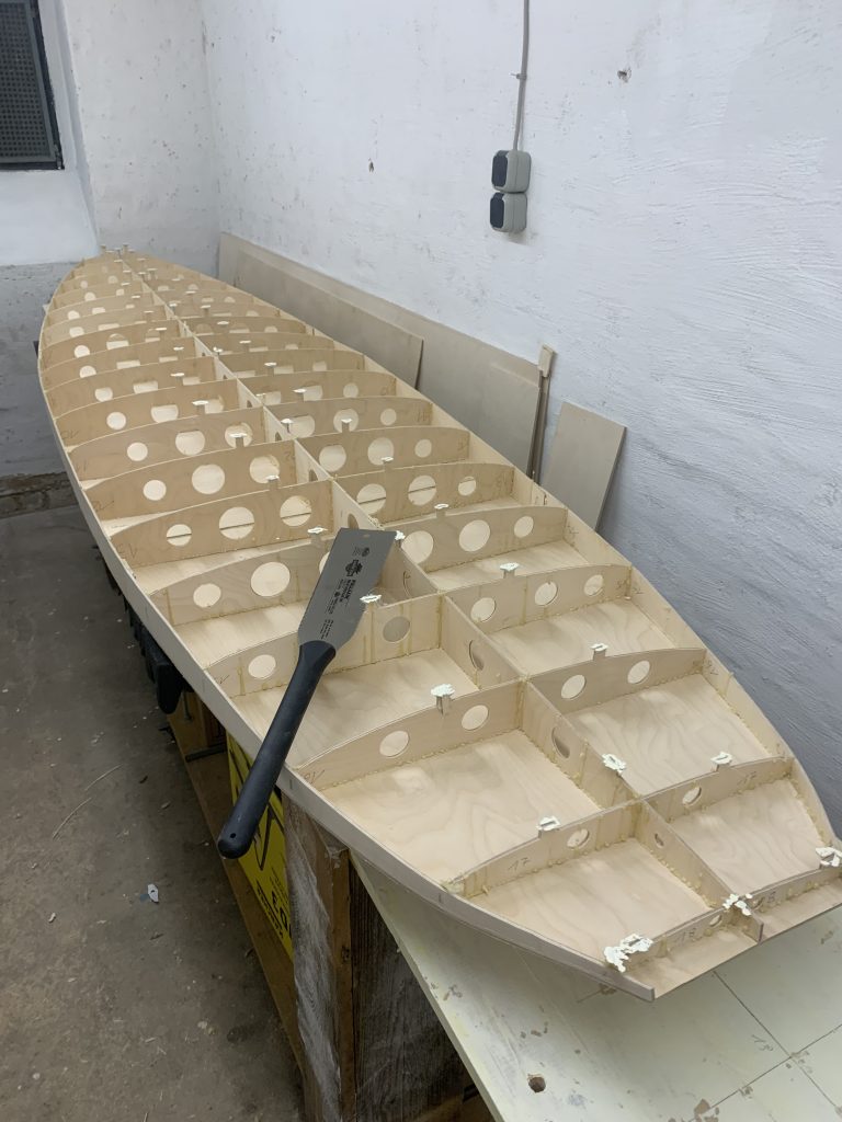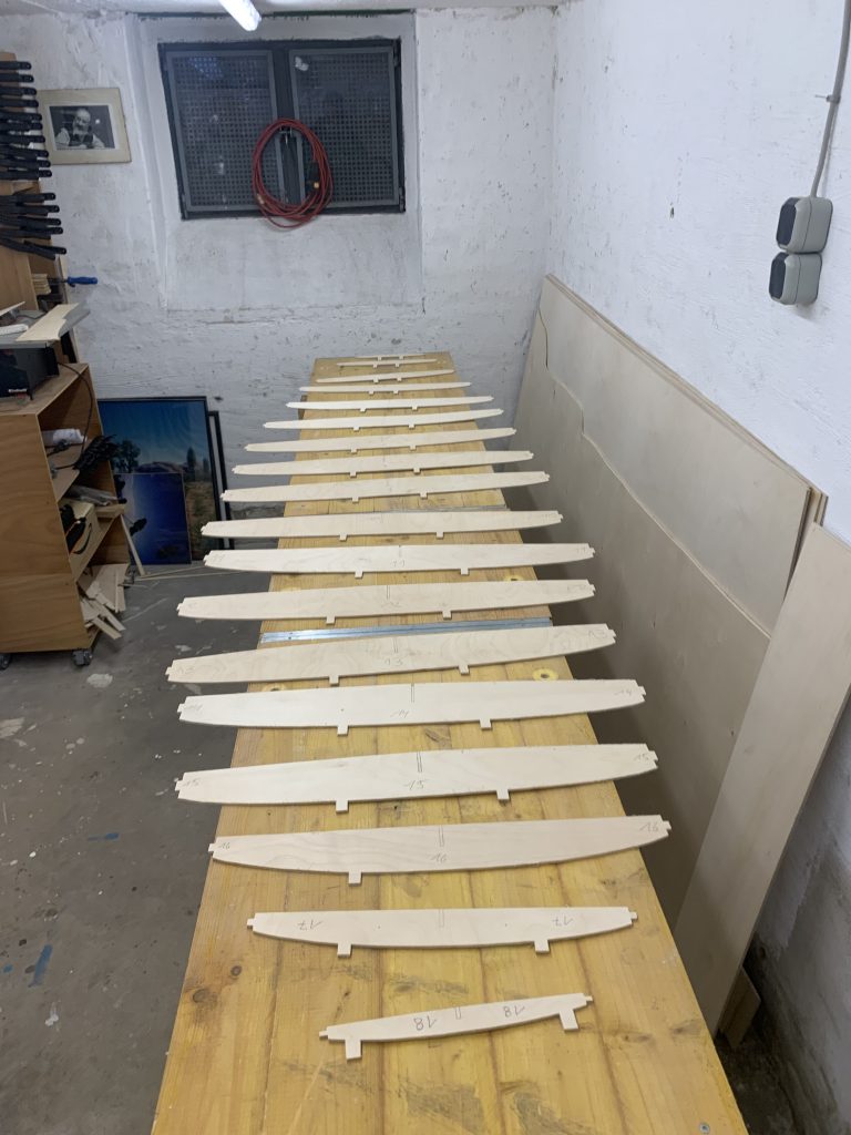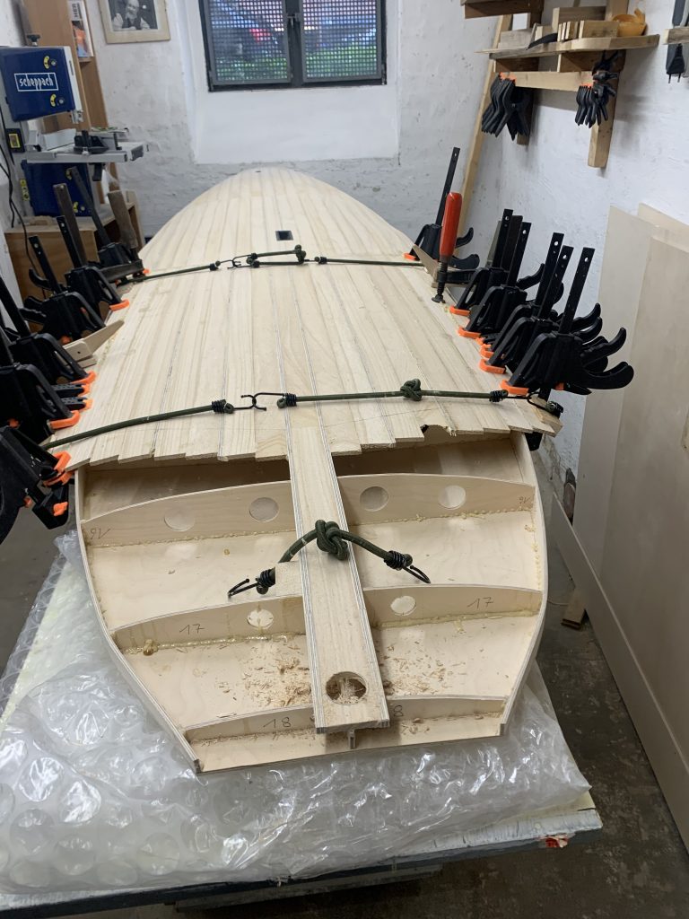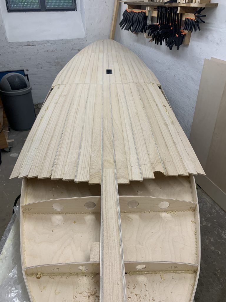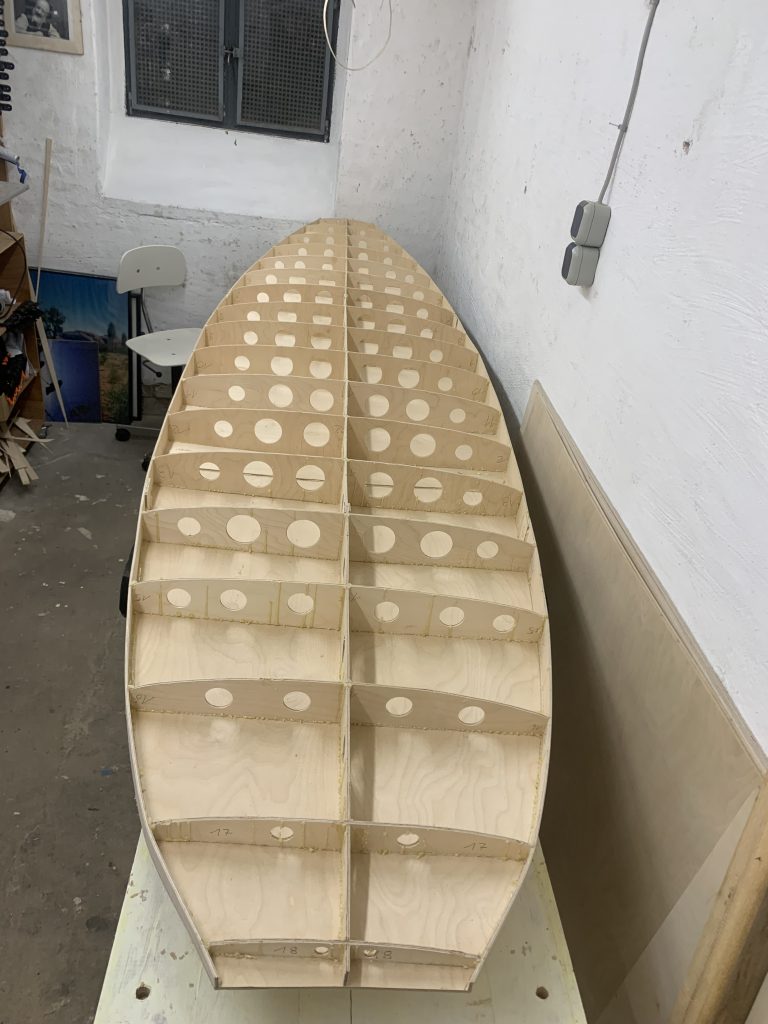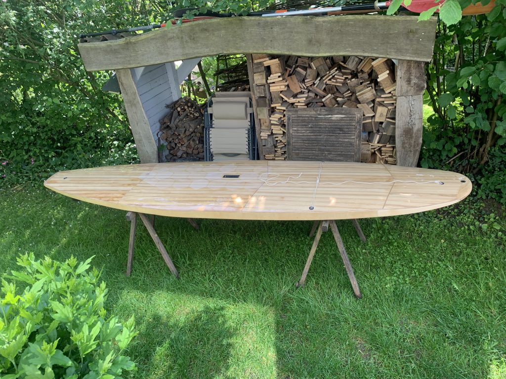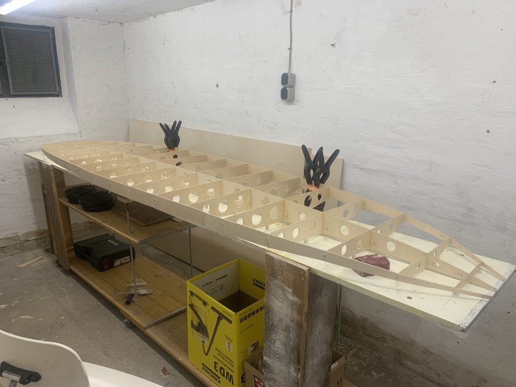 Hier die Fotodoku von meinem Stehboot – Selbstbau….. Aufgezeichnet (4mm wasserfest verleimtes Sperrholz) ausgeschnitten… Plan ausgedruckt… (schweres Papier: mind. 180g/qm – hilft später beim Anzeichnen)
