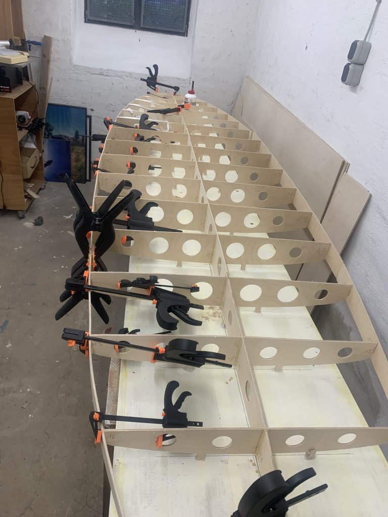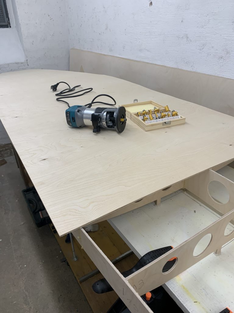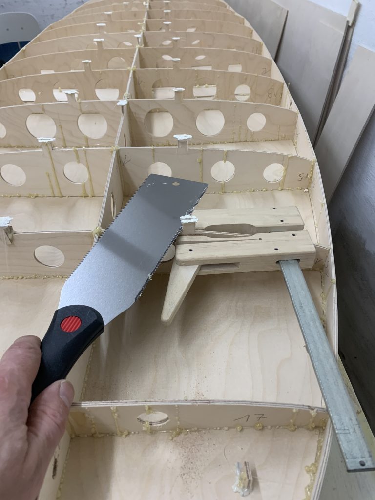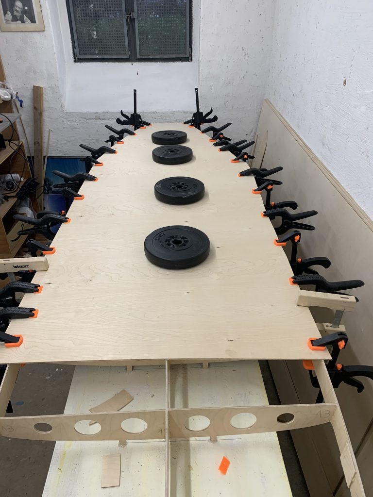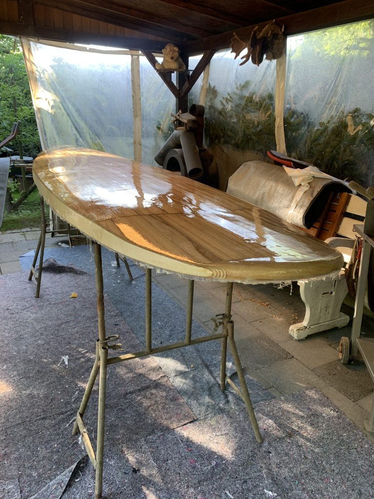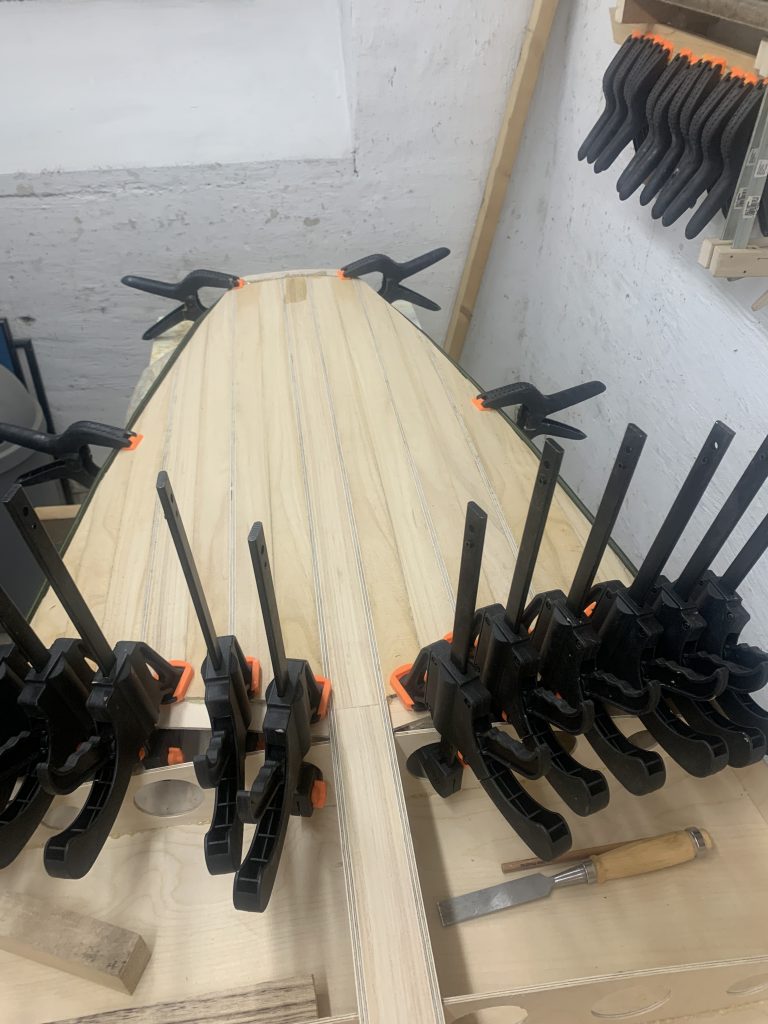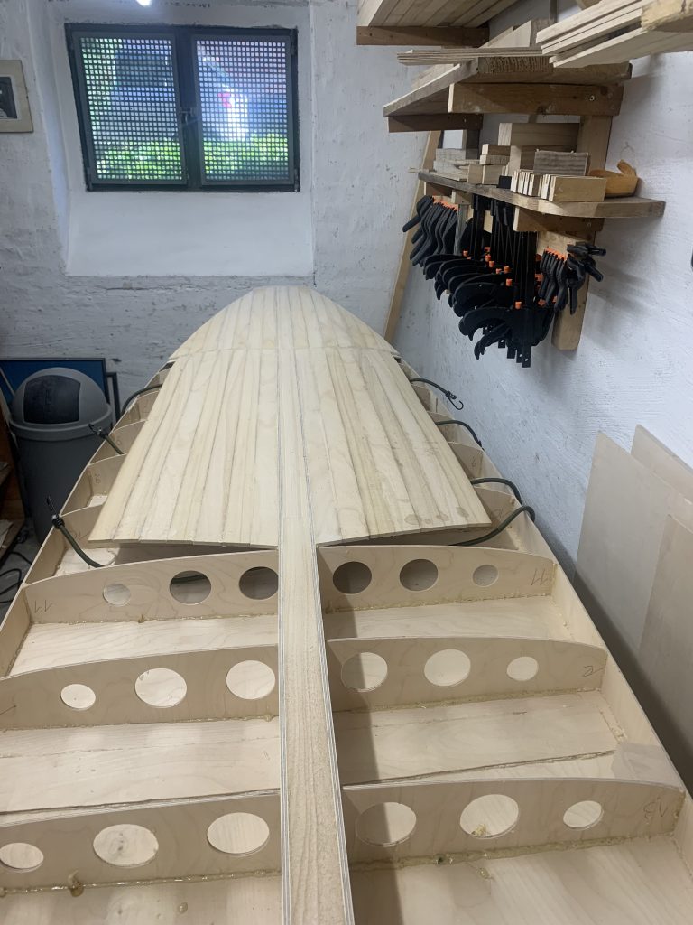 Hier die Fotodoku von meinem Stehboot – Selbstbau….. Aufgezeichnet (4mm wasserfest verleimtes Sperrholz) ausgeschnitten… Plan ausgedruckt… (schweres Papier: mind. 180g/qm – hilft später beim Anzeichnen)