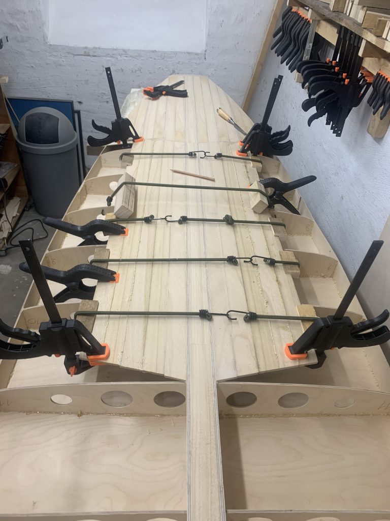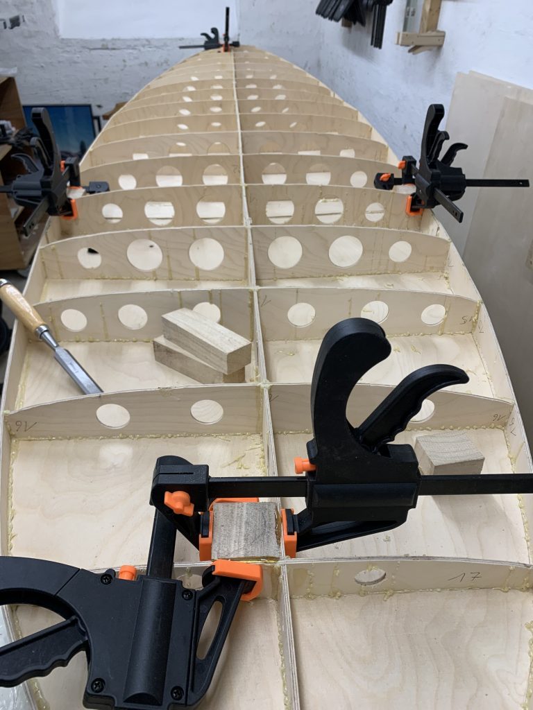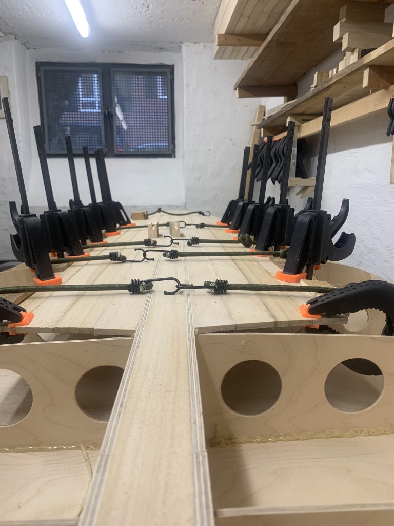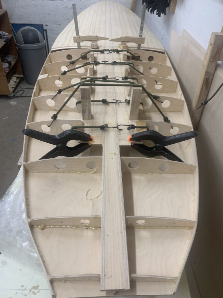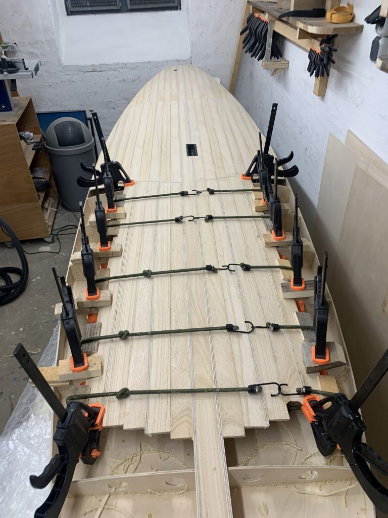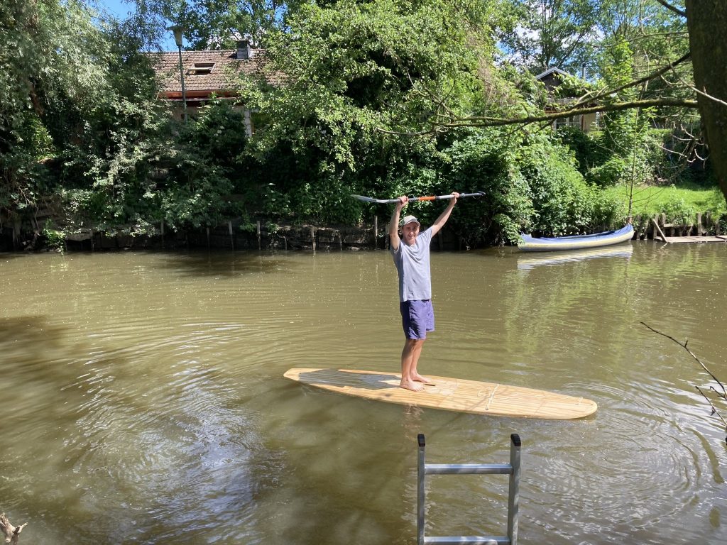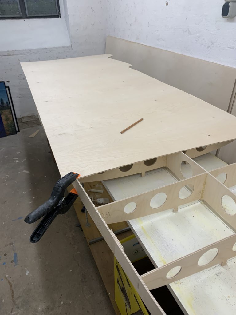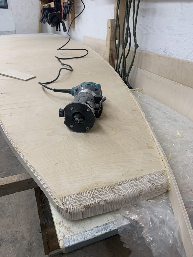 Hier die Fotodoku von meinem Stehboot – Selbstbau….. Aufgezeichnet (4mm wasserfest verleimtes Sperrholz) ausgeschnitten… Plan ausgedruckt… (schweres Papier: mind. 180g/qm – hilft später beim Anzeichnen)